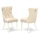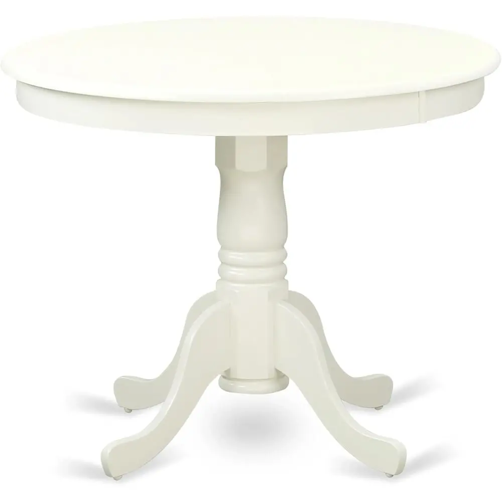 EST WEST FURNITURE – ANDA5-LWH-32 – 5-PIECE KITCHEN TABLE SET The innovative 5-piece contemporary dining table set transforms dining occasions with its outstanding design and practical features. This dining table set for your kitchen presents a sophisticated round tabletop with a pedestal base, paired with 4 luxurious dining chairs draped in linen fabric. The dining chairs showcase a graceful light beige linen fabric upholstery, introducing a touch of elegance to The collection that complements The table’s pristine linen white appearance. The ergonomically designed seats ensure that you and your guests enjoy a comfortable dining experience, enhancing The overall mealtime ambiance. Crafted for enduring strength, The kitchen table is engineered to ensure resilience and long-lasting functionality. The sturdy construction of The modern chairs, coupled with Their high-quality Linen fabric covering, elevates both Their comfort and durability, ensuring years of satisfaction. By incorporating Linen fabric kitchen chairs, every family member and guest can savor Their meals in comfort. These contemporary dining chairs, skillfully designed with ergonomic precision and padded seats, provide exceptional lumbar support, guaranteeing a relaxed dining experience even during extended gatherings. Setting up The kitchen table set is a breeze, thanks to its user-centered design. The dining area setup comes with thorough assembly instructions and all The required hardware, enhancing The ease and convenience of The assembly process for you. PRODUCT FEATURES: Frame Material: Rubber wood Fabric Type: Linen Fabric Table Color: Linen White Chair Fabric Color: Light Beige Chair Dimension: Length: 19.5; Width: 24; Height: 38 Table Dimension: Length: 36; Width: 36; Height: 29.5. Included in The package: 4 Kitchen Chairs and a Dinner Table.