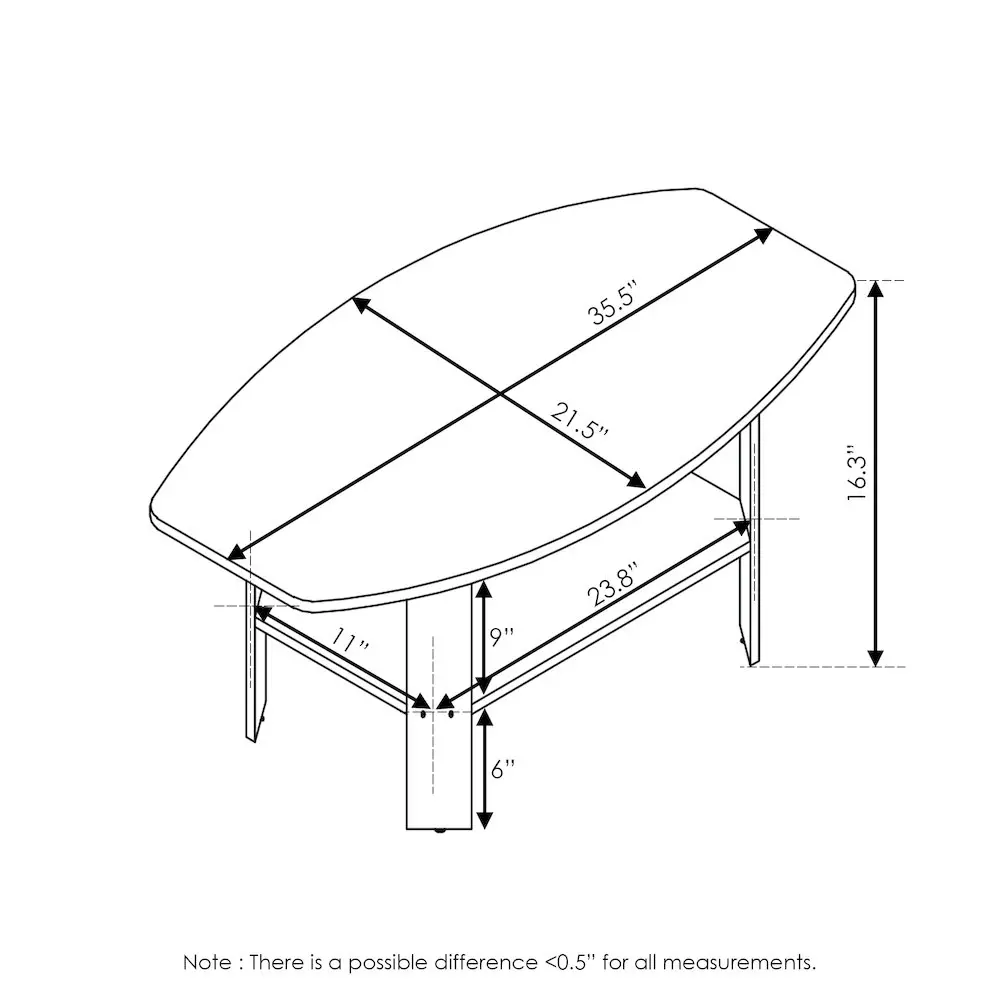 COMPACT STYLISH DESIGN: Petite size coffee table suitable for small spaces QUALITY MATERIAL: high quality medium density composite wood ADDED SAFETY FEATURE: Rounded corner reduces the risk of injury FURINNO FITS: Fits in your space, fits on your budget Product Dimension: 35.5(W)x21.5(D)x16.25(H) Inches