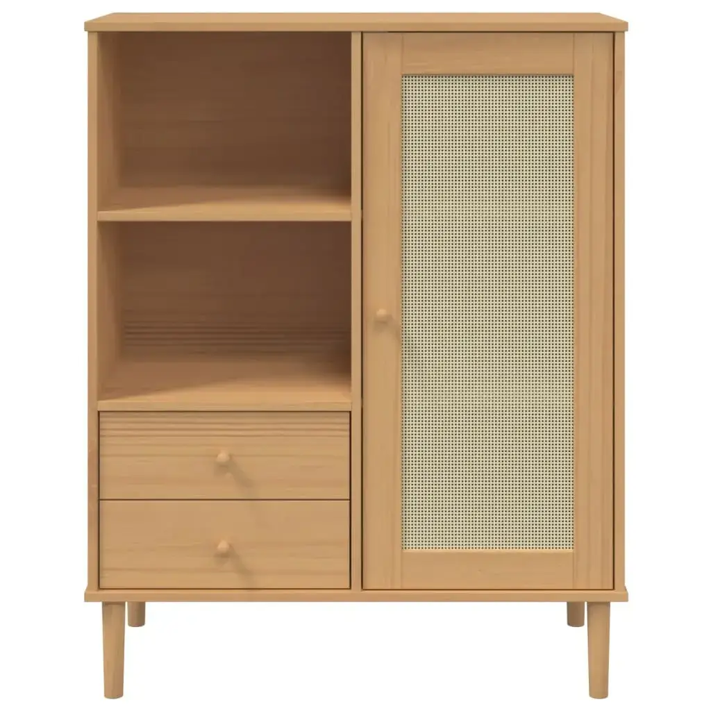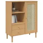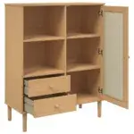 - Rattan look surface: The tall cabinet’s door surface is handcrafted from poly rattan, a two-tone blend of midcentury modern and boho that adds a cozy yet stylish touch to your space.