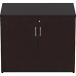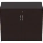 Two-door storage cabinet is part of the Lorell Essentials Series Laminate Furniture. The Essentials Series offers high-quality laminate construction and a contemporary design. Top, side and adjustable shelf panels are made of 25mm melamine-faced chipboard. Other panels are made of 18mm melamine-faced chipboard.