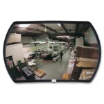 Rounded rectangular, convex mirror is designed with a wide field of vision for use in production areas, entrances and exits. Ideal for low-ceiling installations. Viewing distance is 20′. Attach with included adjustable mounting brackets. Mirror meets OSHA requirements.