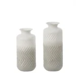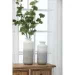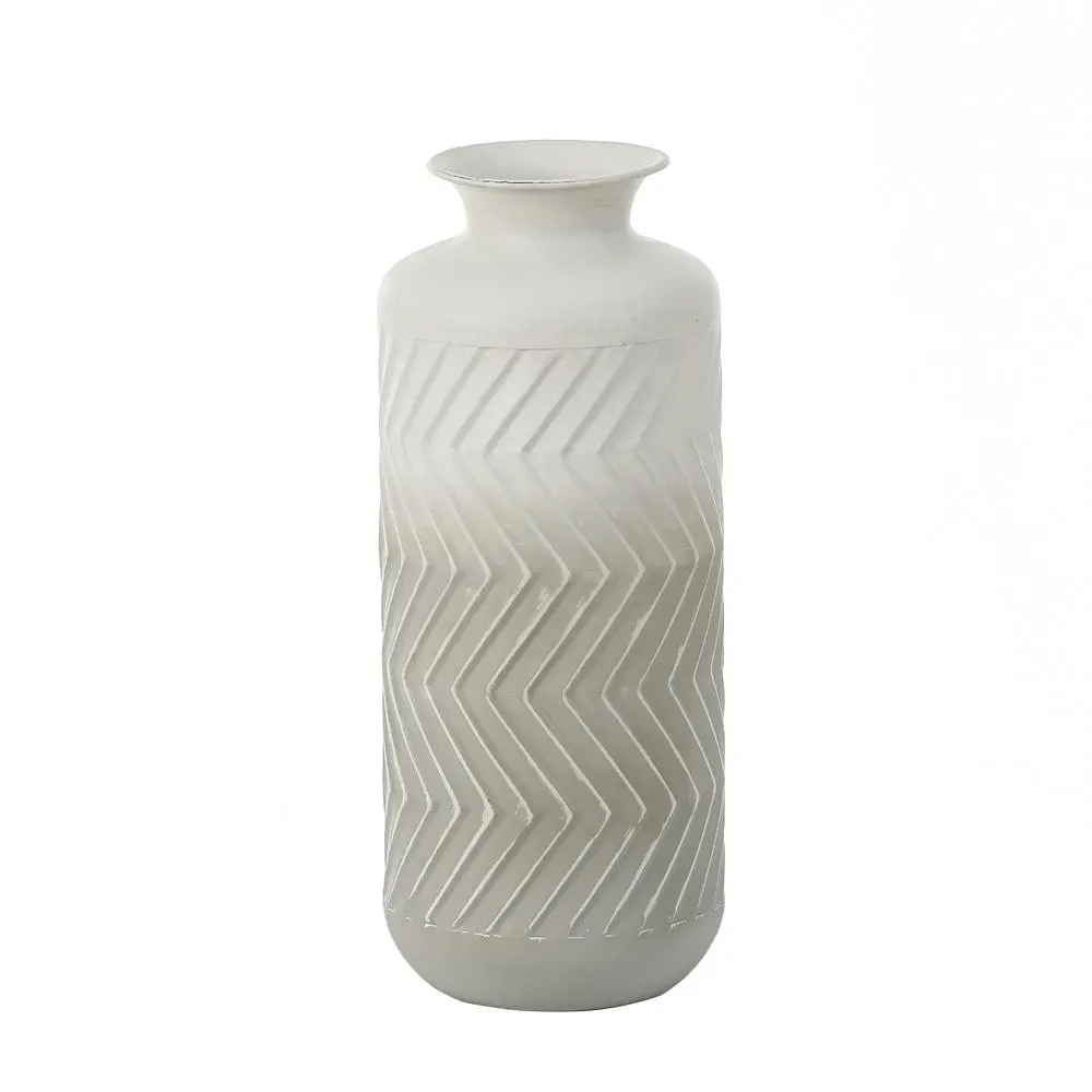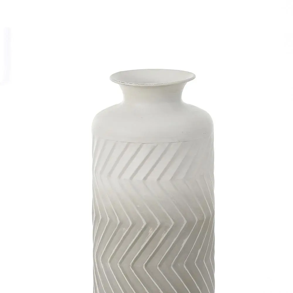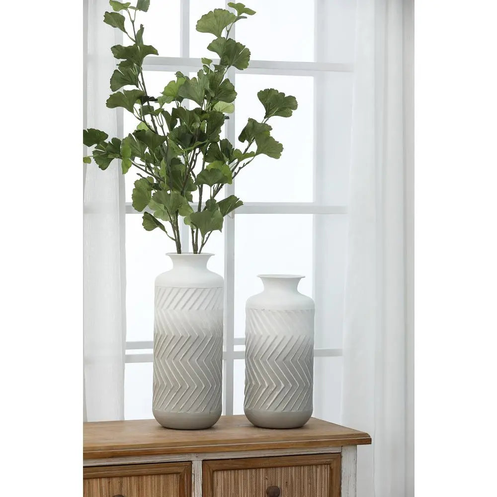 Decorate your home with this set of metal vases. Display your decorative faux or dried plants and flowers, and bring some color and life to your living space. The classic bottle-shaped design, supplemented by wavy textured finishes, is definitely an ideal choice for your eclectic or coastal style living space. Plus, the elegant gradient effect of gray to white creates a modern and elegant atmosphere. The vase set will make unique decorations for the mantle, console or any living space.