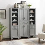 Modern farmhouse design Distressed gray finish Genuine metal hardware in a distressed brass finish Two large cabinets with double doors and magnetic closures on each pantry One adjustable shelf in each cabinet of the pantry One large storage drawer on full-extension ball-bearing glides in the pantry Three adjustable open shelves in each tall cabinet Each tall cabinet features a lower cabinet with an adjustable shelf inside Each tall cabinet features a full-extension storage drawer on ball-bearing glides Cabinet door on the tall cabinet can be installed to open from the left or right All pieces are modular to maximize space and flexibility Pairs well with traditional decor Tall Cabinet Dimensions – 67.75″H x 18″W x 15″D Pantry Dimensions: 23.75″W x 15″D x 67.75″H / 83.6lbs Adjustable and removable shelf with a weight limit of 15lbs Single drawers have a 15lb weight limit Wide drawer weight limit is 20lbs